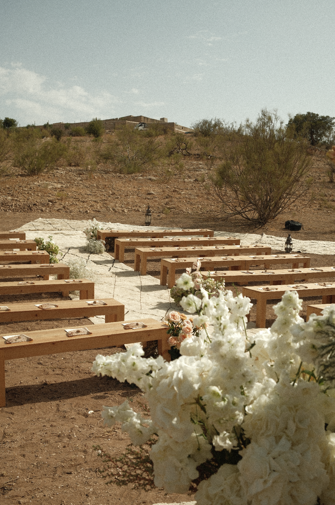 Rent our wooden benches for your next event and bring warmth, character, and practicality to your gathering. Whether arranged in a line for guests to mingle or placed under a beautiful canopy, this bench will elevate the atmosphere of your special day.